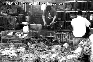 本报讯(记者林子海林鹏实习生摄影报道)同样是普通肉鸡,只要冠上跑地鸡名号,售价每市斤就能上涨七八元,在肉菜市场上,一些摸到这条赚钱秘诀的鸡贩使用此障眼法蒙人。因为难以分辨跑地鸡,不时也有顾客被糊了一把。