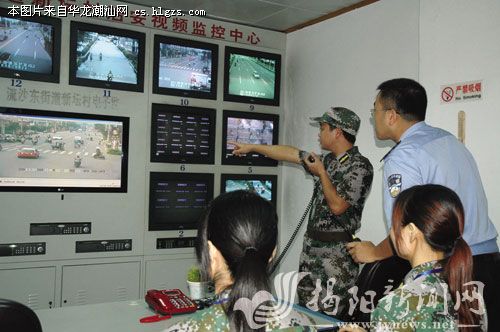 执勤人员通过视频监控系统密切掌握可疑人员动向。