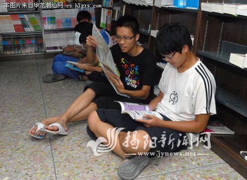 记者近日在榕城图书馆看到,少年儿童借阅室里,不少小读者在家长的陪同下看书,也有的三五成群拿着书籍坐在角落里专心致志地沉浸在书的海洋。该馆谢馆长告诉记者,暑假以来,到这里来看书借书的读者比平时增加了4倍以上,学生读者比平时增加了2~3成。不少家长干脆放心地把孩子“寄放”在图书馆里一整天。据了解,为应对这股“读书热”,该馆还特意征询了读者意见,在暑假前购进一批新书,其中学习门类、网络小说等畅销书广受小读者欢迎。