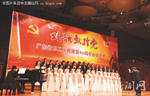 由省总工会主办的“颂歌献给党——广东省职工庆祝建党90周年合唱比赛”于7月26日至28日在广州星海音乐厅举行。全省共有22支合唱队伍参加比赛,通过紧张的角逐,揭阳市怡爱合唱团排名第八,喜获银奖。