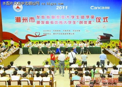 助学金发放仪式上,今年高考成绩列全市文、理科前10名的优秀大学生分别还获得“创佳奖”,其中第一名的奖金为15000元。据了解,此次特困大学生助学金和高考优秀大学生“创佳奖”的奖金共50多万元,全部由潮州市创佳集团有限公司赞助提供,而“创佳奖”自2007年设立至今奖励的高考优秀大学生已达105名。