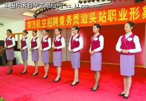 南航2011年乘务员秋季招聘汕头选区经过两天的初试和专业复试,共有66名俊男美女从近千报名者中脱颖而出。昨天下午,选手们进入职业形象展示环节,展示空姐、空哥的职业形象(见图)。有关负责人介绍,职业形象展示环节比赛结束后,选手们还将参加英语能力测试、行政能力测试的笔试,文化素质不过关就要被淘汰,即使外形再漂亮也不行。