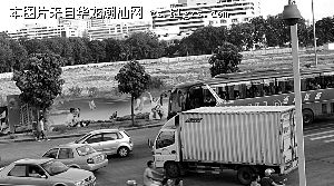 记者在现场做了观察,从5时到5时半这30分钟内,竟然有82辆大型机动车从该路段经过,其中不乏泥头车。这些大型机动车体积庞大,车速极快,且普遍超载。记者在东厦北路与华山路交界处就看到让人胆颤心惊的一幕:绿灯倒计时4秒的时候,一辆载满货物的蓝色货车突然加速冲过十字路口,此时,一位老人骑着自行车正好从防护栏缺口处出来,险些被撞倒。老人受惊不小,气得破口大骂,而大货车司机却早已扬长而去。