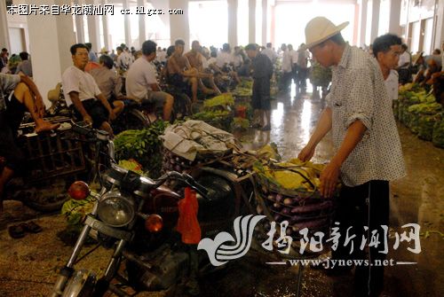 每天下午,揭东县锡场镇华清蔬菜市场挤满了菜农和菜贩。郑楚藩 摄
