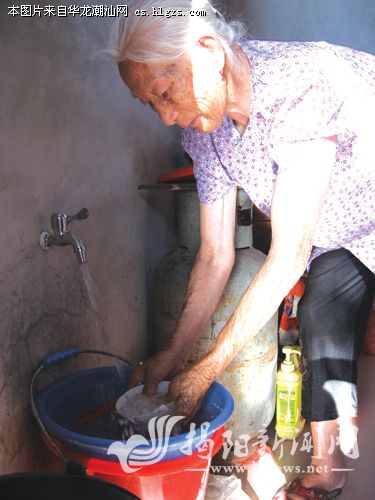 山陇村84岁的五保户唐柔告别了手摇井,用上了政府免费为她安装的自来水。