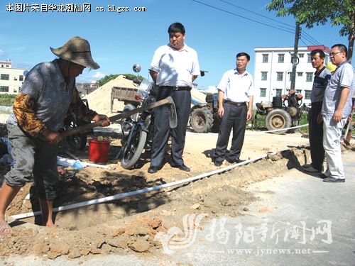溪西镇主要领导到现场检查饮水工程建设进程。