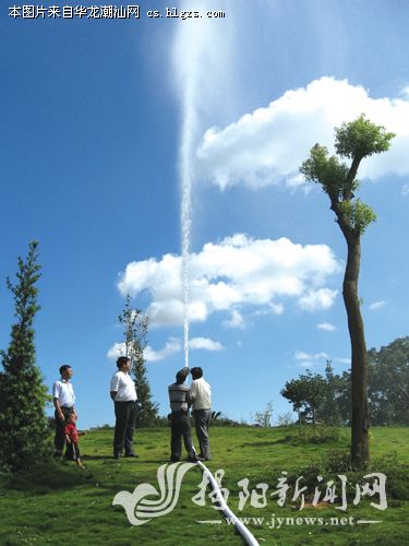 蓝天白云下,冲天而起的自来水水柱昭示着53万村民将永远告别不洁饮水的苦涩过去。