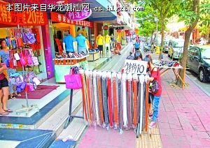 此外,某些路段部分商铺占道经营的现象仍然严重。在长平路上,一家砂锅粥店把厨房搬上人行步道,洗菜切菜的活儿全都在步道上完成。华坞路的沿街店铺几乎全都出现了占道经营:水果店的摊档从店内一直延伸到店外直逼马路。