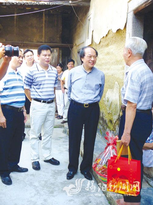 戴德丰先生于今年8月24日上午莅临普宁占陇镇开展慰问活动,图为戴先生(右二)慰问该镇占梨村村民场面。黄健新 摄