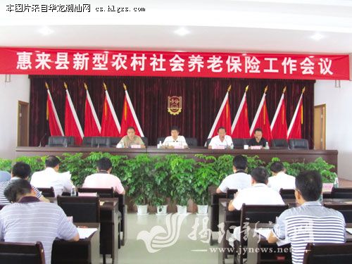 为快速、全面推进新农保这项民生工程,惠来县近日召开工作会议,对新农保工作进行全面部署,参加会议有:县政府县长;县新型农村社会养老保险工作领导小组全体成员;各镇场长、分管领导,镇劳动保障事务所所长;县人社局有关负责人。县委常委洪少民主持会议,县政府县长方如隆就如何抓好新农保制度的落实提出了明确要求。