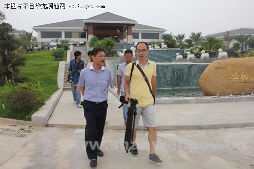 图为海韵假日酒店董事长陈乙军(左)带领与会记者参观酒店