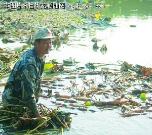 虽然是下午4点,池水的温度仍有些发烫,但这对林叔来说已经习以为常。种植莲藕10多年,收获季节,林叔每天从下午2点多就开始挖藕,一直干到天黑,每天都要浸泡在水中五六个小时,也因此落下关节炎。挖完莲藕之后,他和妻子每天晚上还要把挖出的莲藕进行清洗,再根据口感分类。