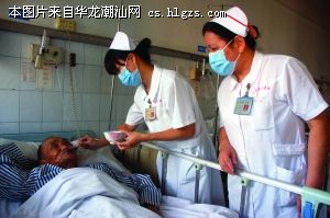 黄医生还告诉记者,最近医院收治了不少与类似张南运这般由于摔倒引发疾病的老年病人。他提醒,时下正是夏末秋初,昼夜温差较大,老年人应注意身体保健,平时多监测血压、血糖等指标,定时体检,尽量避免摔跤跌倒。如果老人发生跌倒后休克,亲人或旁人要及时拨打120急救电话,切勿随意移动或搬动病人,因为搬动姿势或力度不当容易造成窒息或加重创伤。图为护士在喂张大伯喝水。