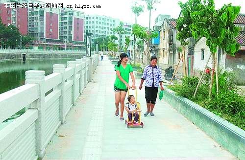 记者昨天来到护城河北段景观现场看到,整洁的环境,美丽的绿化带,美观大气的路灯,都给人耳目一新的感觉。当地居民纷纷扶老携幼来到景观带上休闲散步(见图),尤其是晚上,城区群众更是大批涌上景观带,到处人头攒动。据介绍,护城河景观工程二期南北段于去年10月份开工,南北段全长约8716米,景观道路按规划设计为16米,其中景观带4.5米,混合车道7.5米,人行道4米。经过一年来的整治以及景观工程的配套,包括沿河两岸道路、路灯、石栏杆、公共厕所、景观灯、绿化种植、休闲广场等项目建设有序推进。