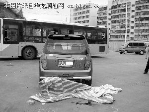 昨天上午9时许,记者接报料赶到事故现场,只见东厦北路与乐山路交界路口中央,停着一辆深灰色的哈飞小客车,车身方向自西朝东。小客车车身后约1米多处,有一滩鲜红的血迹,旁边散落着一张红蓝白相间的编织布和一张米白色被单。太惨了,当场就死了,现在尸体已被送到殡仪馆去了。围观的人群中有一男子对记者说。此时,另一阿伯告诉记者,他大约是8时45分左右骑单车从汕大附属二医院出来,经过东厦北路与乐山路交界路口时,忽然听到身后砰的一声响,回头一看,就见到一名五十多岁的妇人倒在地上,小客车的前轮已碾过她的身体。不过,电动车朝哪儿走,怎么跟小客车碰上的,我没看到。阿伯说。
