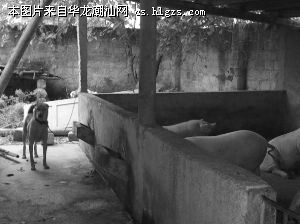 D江街道蓬北社区居民翁先生有一间四五百平米宽的猪舍,18个猪栏里共养了80多头猪,其中有已经长至两三百斤的大猪,也有刚出生的小猪崽。偶有听说邻居猪只被盗,所幸的是他的猪舍至今仍平安无事。翁先生告诉记者,2006年建设猪舍时为了防盗,他动了一番心思,将猪舍错落分布,并在猪舍里养了两条凶猛的大狗(见右图),白天时绑在柱子上,夜晚关上铁门离开前将它们放出来在猪舍里自由行走,一有陌生人走近或企图开锁就会吠叫警告。最关键的是,翁先生将猪舍设计成只有一个出口,大门仅有约半米宽,杜绝窃贼直捣黄龙把车子开进猪舍为所欲为。翁先生的住处离猪舍不到100米,如果半夜狗吠得太厉害,或是猪发出异常的叫声,他都会起床打着手电筒看看情况。然而,防盗手段不一定能发挥作用。D江街道蓬西社区的林女士在老屋旁建猪舍养猪,由于两三年前曾发生过猪只被偷的事,她在猪舍安装了铁栏防盗,每天早上喂食时打开铁栏,晚上再次喂食后关上铁栏并加上铁锁。近日早上,她像平日一样到猪舍喂猪,却看到门锁被撬掉在地,3头大猪被连锅端,只剩下空空如也的猪舍。林女士说,3头猪养了四五个月,每头都有280斤左右,差不多能出栏了,共值1万多元。看着数月的辛苦付出打了水漂,林女士的婆婆心疼得有好几天吃不下饭。