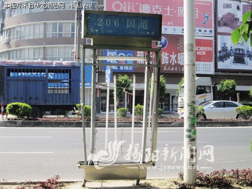 位于206国道揭东路段的一处指路牌灯箱只剩三只灯管