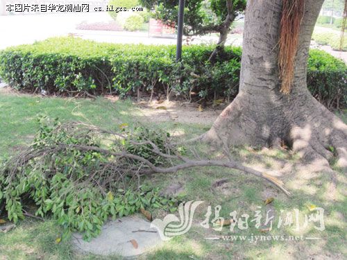 无辜的绿化带树木被折断