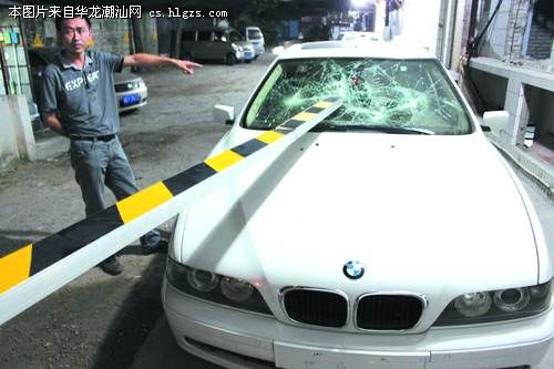 昨晚10点半,记者接到报料后赶到事发的露天停车场,只见停车场门口的道闸已经严重变形,旁边保安亭的门窗被砸至破裂。在停车场内,包括宝马凯越等6辆私家车的前后挡风玻璃均有不同程度的损坏,其中白色宝马车的前挡风玻璃受损严重(见图)。停车场的负责人杨先生告诉记者,该停车场开业至今已有2年多,由于旁边的嘉华大厦仍未有人居住,所以停车场内一直都是停放着附近住户的车辆。杨先生还透露,这一次闯入停车场砸车的共有5个人,他们先是在9点半闯入场内砸车和打人,停车场马上报警,随后警察到现场调查,但就在警察离开后不久,这伙人竟然胆大包天地回到现场继续砸车。