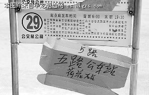 荷花园站:手写纸板顶替5路公交站牌(图②)