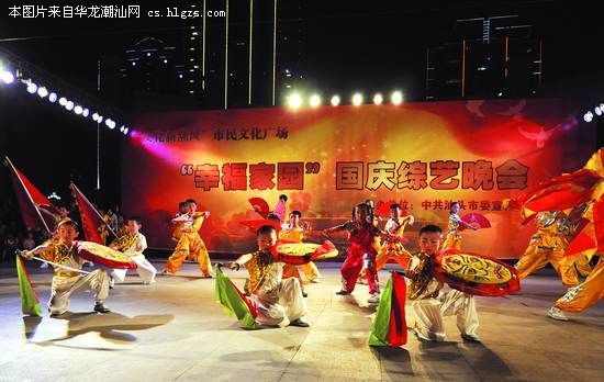 本报讯(记者李晓颦袁笙摄影报道)昨晚的人民广场人如海、歌如潮,由汕头市委宣传部主办的幸福家园国庆综艺晚会在这里举行,精彩纷呈的文艺节目让市民共享了汕头文化建设的丰硕成果,也为国庆节增添了浓浓的喜庆气氛。