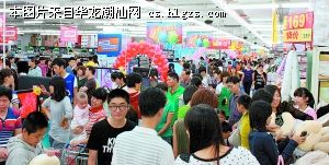 本报讯记者张锦梅、李德鹏摄影报道:国庆长假期间,购物消费是许多市民必不可少的活动主题之一。记者走访发现,商家们瞅准时机推出了各种各样的促销活动,引来顾客盈门,赚了个盆满钵满,有的超市国庆节当日销售额比平时翻了一番。
