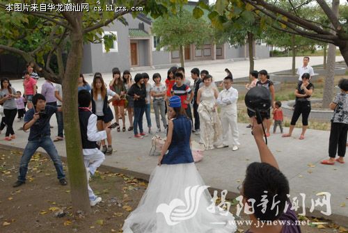 有市民趁假期拍摄婚纱照,吸引了不少游人围观。 郑楚藩 摄