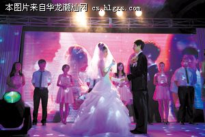 记者了解到,婚礼策划近几年来在设备上也不断地推陈出新,比较普遍的是运用干冰、泡泡机来制造浪漫效果,预算高一点的婚礼还会有烟火表演,甚至动用几个摄像机机位全程摄影和现场切换,并出动摇臂摄像机拍摄进行婚礼的现场直播。会场中央则设置了一个大的LED显示屏,现场直播整个婚礼过程,整场婚礼十分盛大。