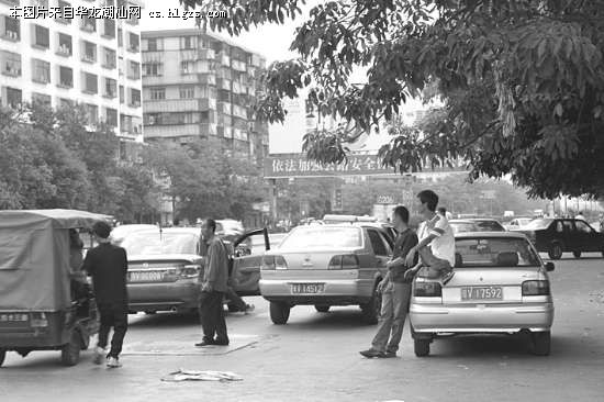 昨天上午10时,记者再次来到该路口,只见来往的车辆相对较少,而停放在此处的蓝牌车和摩的仍有近十辆。