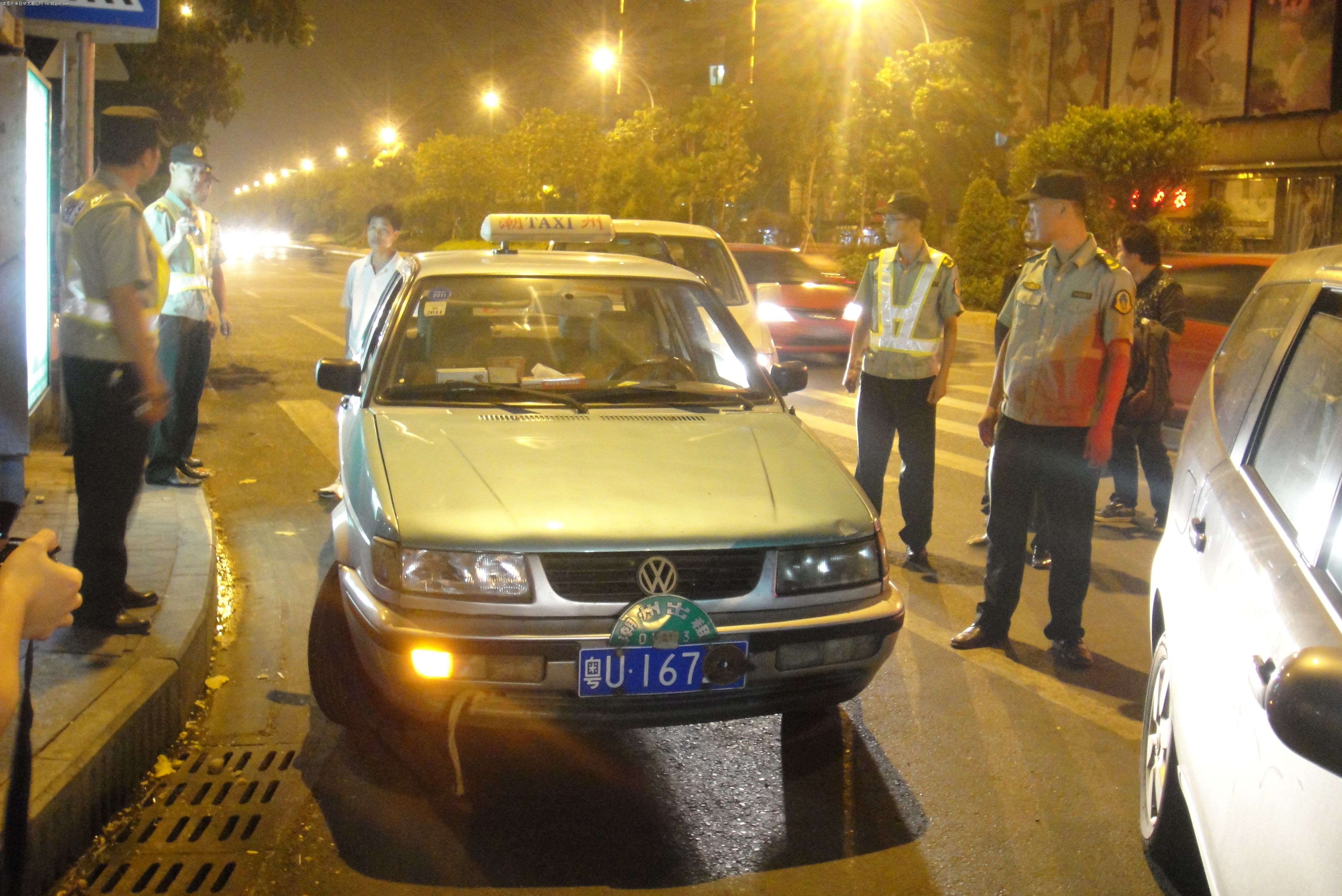 本网讯(记者蔡英摄影报道)昨日,汕头市交通运输局综合行政执法局再次开展出租车集中整治行动。当晚,记者跟随执法人员在汕头市多个路段探访。截至今天凌晨1点,共查处违规出租车5辆(其中:本市违章出租车3辆,异地违章出租车2辆);假冒出租车1辆;违规经营客车1辆;清理非法票点1个。据悉,从9月1日至国庆期间,共查处违规出租车120辆(其中:本地违规出租车有56辆,异地经营出租车有64辆);假冒出租车4辆。查处非法营运二轮摩托车228辆,非法营运汽车44辆。
