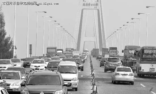 图:C石大桥上密集的车流。本报记者袁笙摄