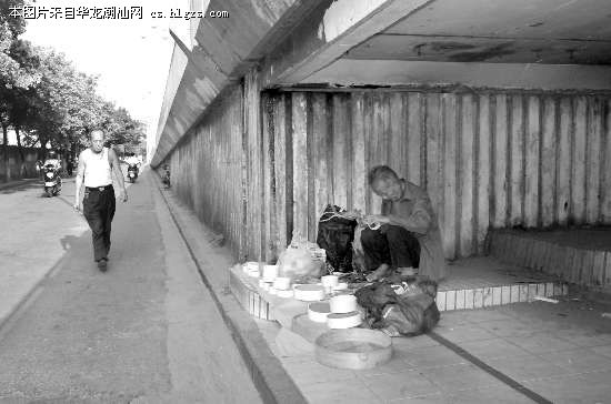 在汕樟立交桥下,80余岁的林伯现场手工制筛吸引了路人的围观,在他那双手的上下翻飞中,一个用塑料框和细密筛布围成的精巧筛子很快就出炉了。
