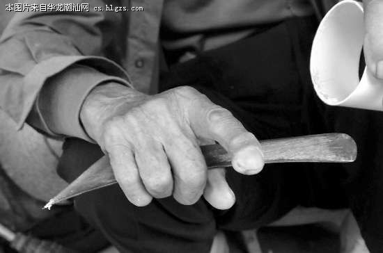 ②:林伯已变形的手指是半个多世纪和筛子打交道留下的印记。
