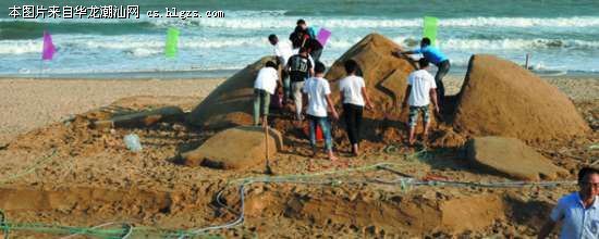 在龙虎滩上,组织方已经提前堆砌了超千平方米的场地。堆砌动用了大型挖掘机械,整整用了两天的时间才堆砌出用于雕塑的沙堆。