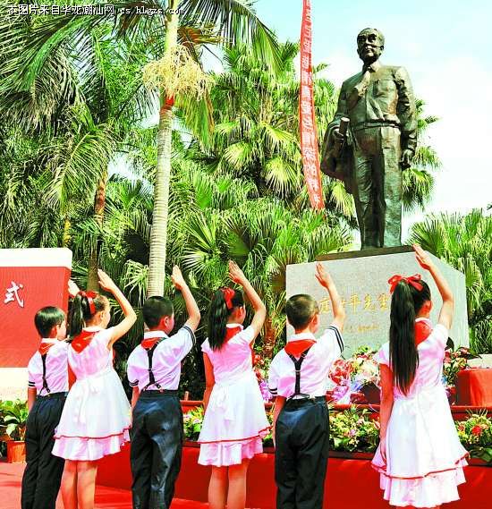 少先队员向庄世平先生塑像敬礼。