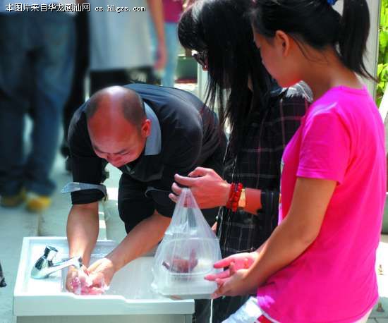 只剩最后一个鲎@了,谁要?很快,这最后的鲎@就被一名食客抢夺了。昨天中午,明兴小吃店里挤满了购买鲎@、春卷等特色小吃的顾客,工作人员忙得不可开交。生意火爆,鲎@很快便卖完,工作人员只能跟顾客解释再过半小时后才有。