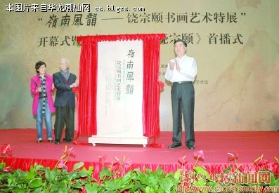 本报广州电(记者 庞磊成) 广东省文化强省建设迎来一件大盛事。昨天下午,“岭南风韵――饶宗颐教授书画艺术特展”开幕式暨电视纪录片《饶宗颐》首播式在广东省博物馆隆重举行。中共中央政治局委员、广东省委书记汪洋与饶宗颐教授一起为展览揭幕。