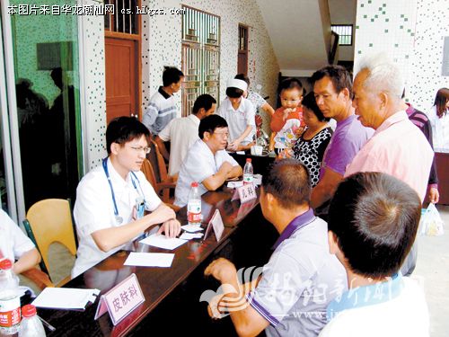 10月22日,市中医院联合揭东县玉湖镇卫生院,以“敬老助老”为主题到揭东县玉湖镇举行送医送药义诊咨询活动,为村民们进行身体检查和健康咨询(见图)。