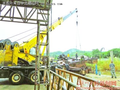 本报讯(记者 吕晓扬) 随着氧焊枪的火舌不断吞吐,被没收的采砂船采砂管被切割下来,船身也逐一分解成块,市县相关部门半年来经执法没收的12艘“三无”采砂船被逐一拆解。这是昨天下午记者在市拆解违法采砂船现场会上见到的一幕。