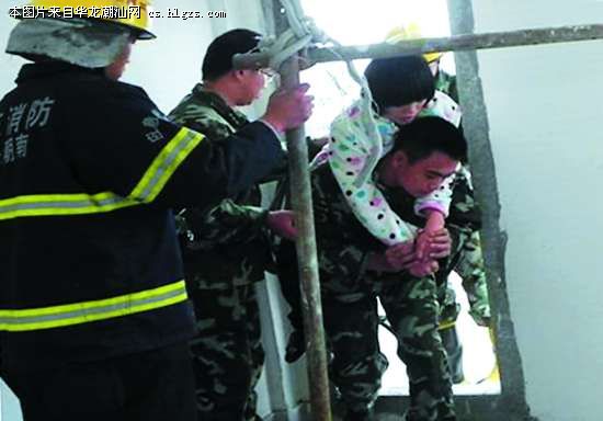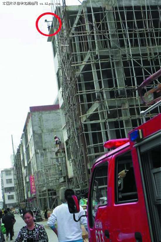 本报讯(记者林子海林鹏摄影报道)前天上午,一名精神病女子攀爬上一民宅顶层意欲轻生,危急时刻,潮南消防官兵快速反应,将轻生女安全救下,整个救援过程仅仅6秒!11月11日上午8时许,汕头市潮南区峡山街道南里村有一精神病女子爬上正在施工的一幢6层居民楼楼顶准备跳楼。楼下群众发现时该女子已在屋顶边缘,且浑身发抖,表情木然,只要稍微不慎便有坠楼的危险,情况万分危急!楼下群众只好报警向消防部门求救。