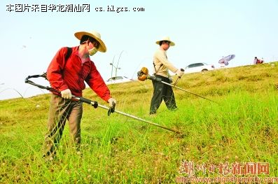 昨天下午,两名工人在清理韩江北堤上杂草和垃圾。据了解,有关部门每年为韩江河堤进行四次清理、灭虫害鼠害的工作,维护韩江河堤安全和洁净的环境。 本报记者 李立治 摄