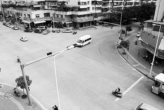 这究竟是什么原因呢?原来这个路口虽然设置了红绿灯,但是四个方向只有金新北路往北方向这个路口有明显停止线,其它三个路口则只有靠路边模糊的一点痕迹,而且整个路口的四个对向也没有一条清晰的人行横道线。