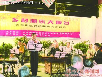 昨晚,乡村潮乐大舞台太平街道初赛在牌坊街举行,吸引了大批观众驻足观赏。据了解,从本月12日开始,湘桥区西新街道、桥东街道、凤新街道已分别组织了初赛,拉开了全市乡村潮乐大赛的序幕。图为参赛社团正在演唱比赛曲目。