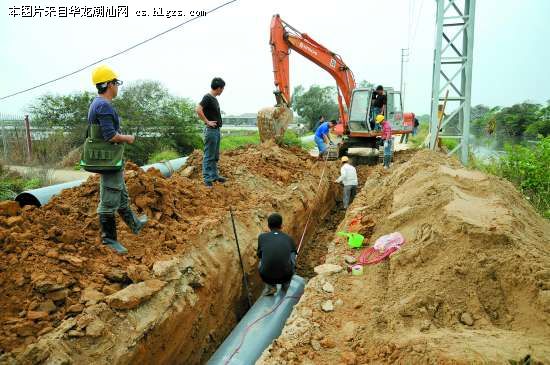 图为南洋自来水公司施工人员加紧铺设供水管网。本报记者李俊伟魏盼生摄