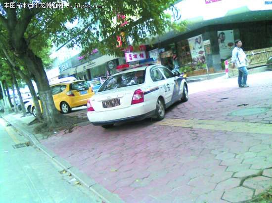 据目击者辛先生介绍,本月11日他途经长平路与华山路交界处时,刚好看到一辆车身标着公安字样的警车正在等待红灯,后面车牌竟然用迷彩布遮了起来。后来这辆车子拐进华山南路,停在一家面包店前(如图)。