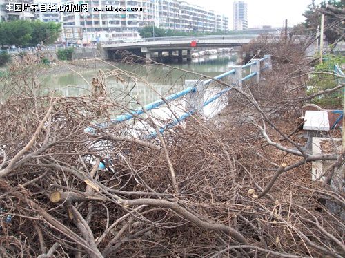 昨天上午10时多,记者来到市区北海旁路接近乌桥路段时,果然看到这里走廊上不时可见成堆的枯枝烂叶,走廊一处入口也被堆满了修剪下来的树枝,令一些想走上走廊散步的市民寸步难行!住在附近的市民张先生对记者说,这些堆积树枝是20多天前园林部门修剪后留下来的,没想到成堆树枝都已干枯了,却还未被清理干净!