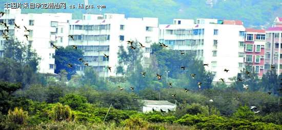 记者登上观鸟台,展现在眼前的是一片绿色的海洋,清新的空气迎面而来,不时能听到鸟儿清脆悦耳的鸣叫,让人心旷神怡,陶醉其中。在观鸟台上,远远可以看到有的鸟儿站在草茎上稍作休息,有的在滩涂悠闲觅食,或是成群的鸟儿越过树林,自由自在地飞翔