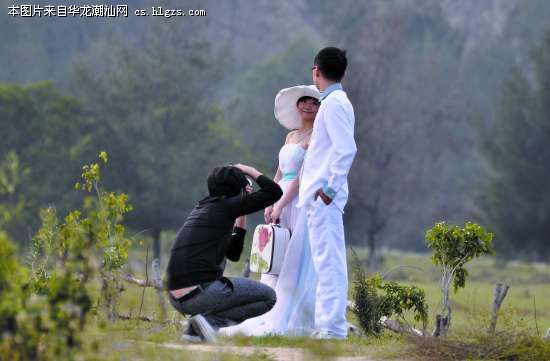 一对新人来到红树林拍婚纱照,鸟儿、蓝天、白云、绿树、青山交相辉映,亦别有一番风味。