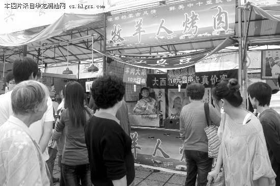 这对来自蒙古巴尔虎右旗的兄弟,穿着独特的民族服装,卖的是具有浓郁蒙古风情的羊肉大串和铁板鱿鱼。东西在美食节中并不稀奇,可这俩兄弟却卖得有滋有味。他们一边烧着烤串,一边随着雄浑的蒙古音乐载歌载舞,歌声嘹亮,舞姿优美。他们的展位并不大,大约只有三四平方米,而且烟熏火燎,可他们却跳得不亦乐乎,不时还向围观的客人抛来电力十足的火热眼神,几乎每一个经过的客人都会忍不住驻足观看。