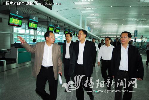 昨天下午,在市委书记陈绿平,市委副书记、代市长陈东等的陪同下,林木声一行先后深入揭阳潮汕机场、市文化中心、市区揭阳华侨高级中学和公租房建设项目、市区莲花大道北、临江北路等地进行调研。在揭阳潮汕机场,林木声一行察看了航站楼,详细了解机场发展规划以及机场区域交通状况,认真检查了出发厅、等候区、贵宾厅、登机口、旅客到达通道等设施,称赞机场“虽不大,但温馨、漂亮”。